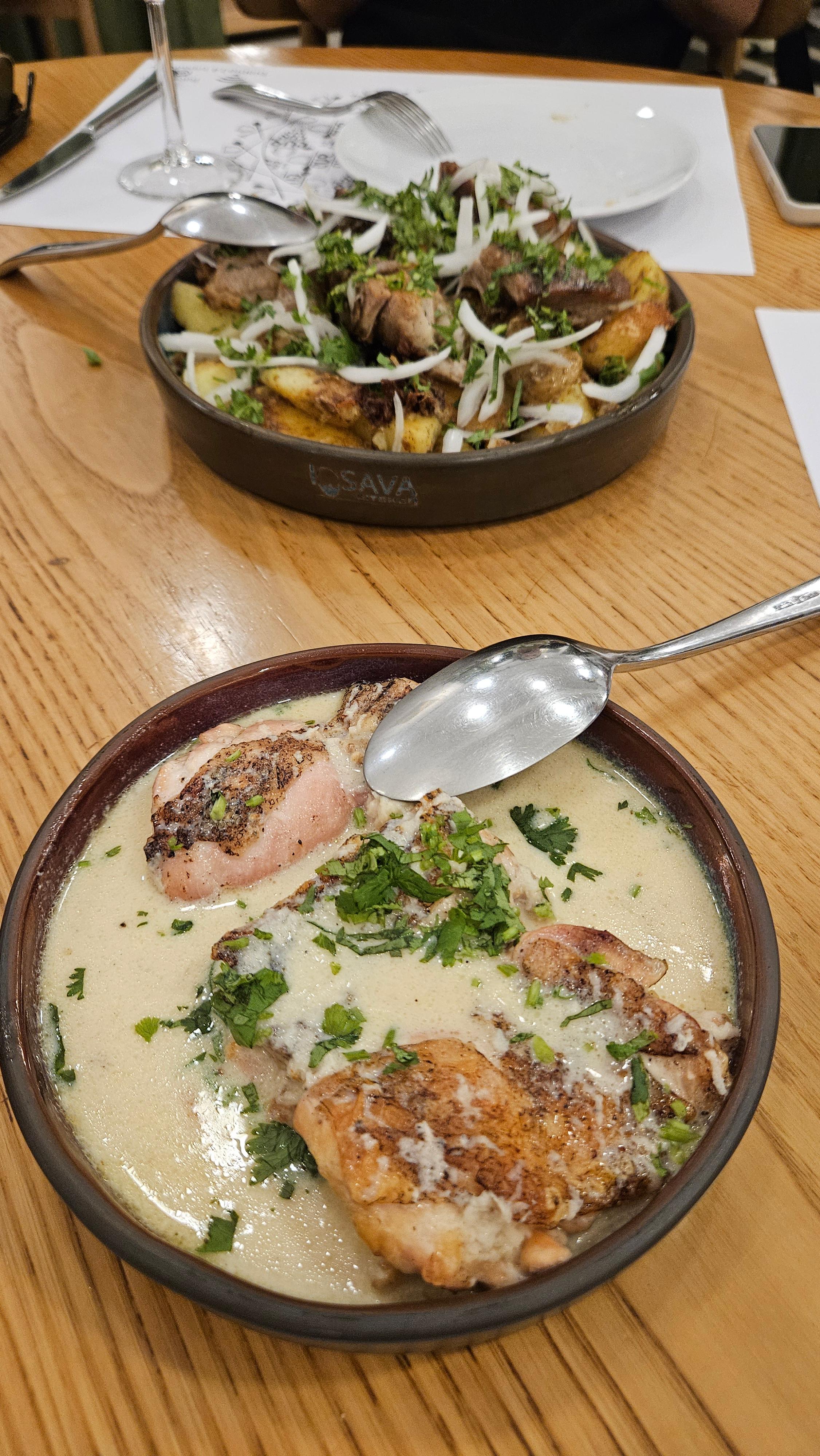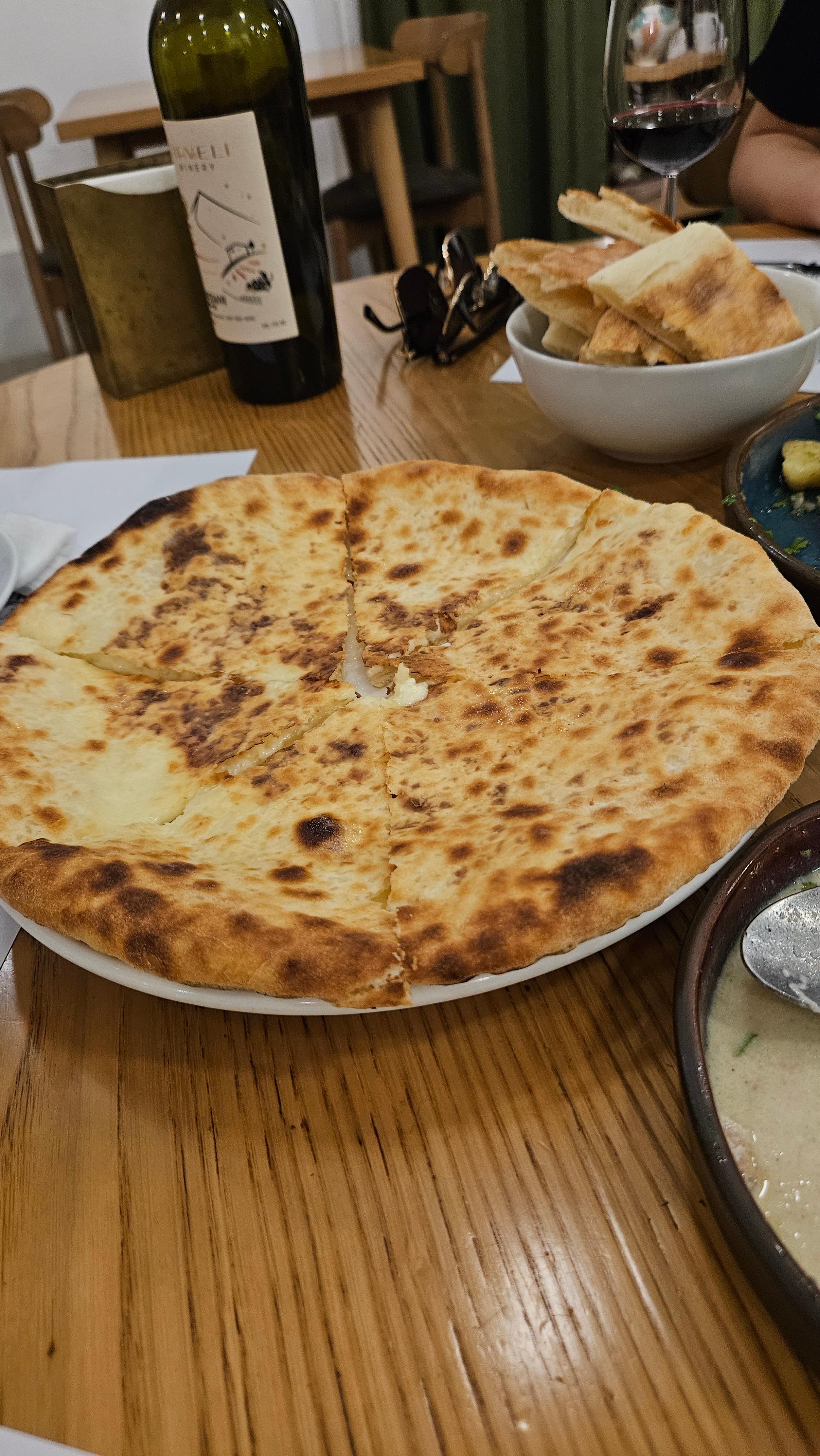 므츠바디랑 비슷한 느낌을 주지만, 조지아 전통 항아리 그릇에 구워 그대로 내어 옵니다.