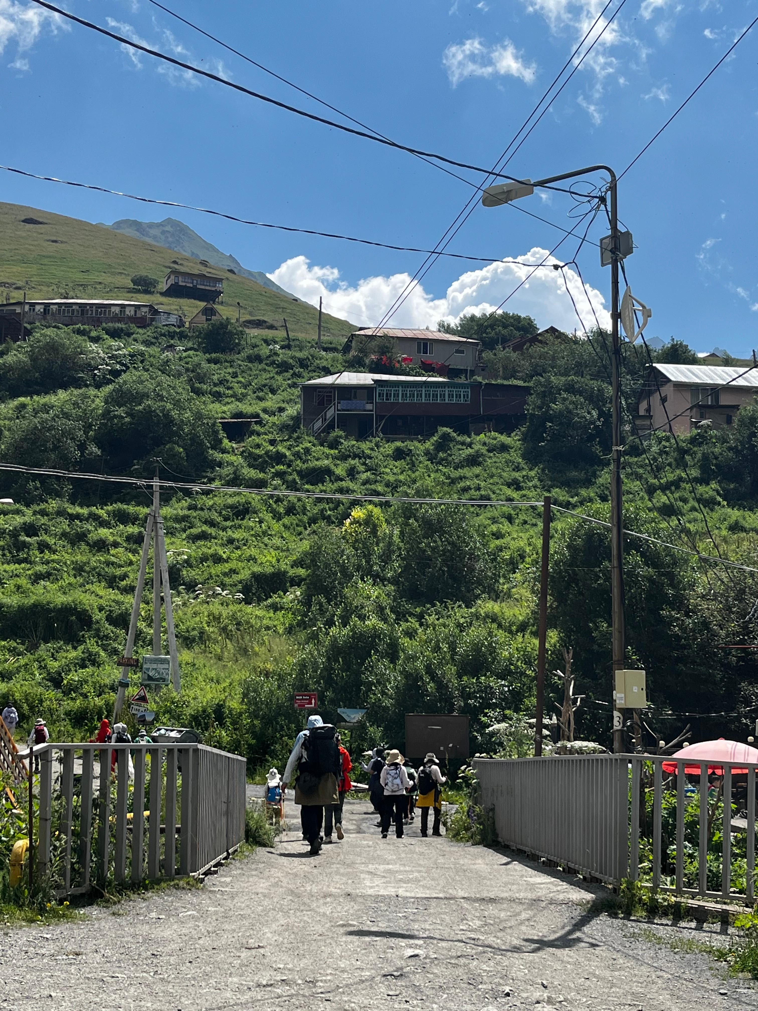 차우키 산과 목조 건물과 조지아 국기가 보이기 시작하면 가파른 경사는 거의 끝난 거예요~!